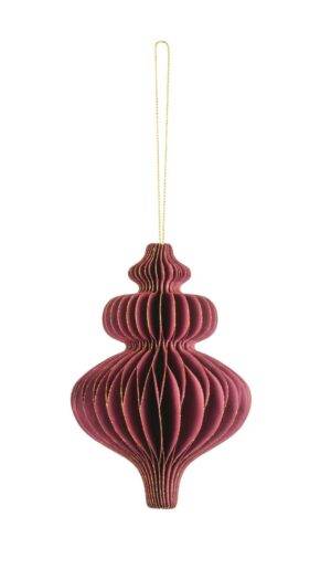 Honeycomb paper bauble Icicle, burgundy, 10 x 15 cm, PartyDeco