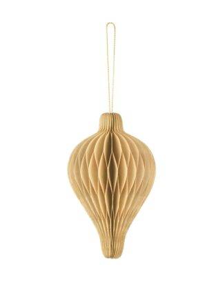 Honeycomb paper bauble Droplet, beige, 8 x 12 cm, PartyDeco